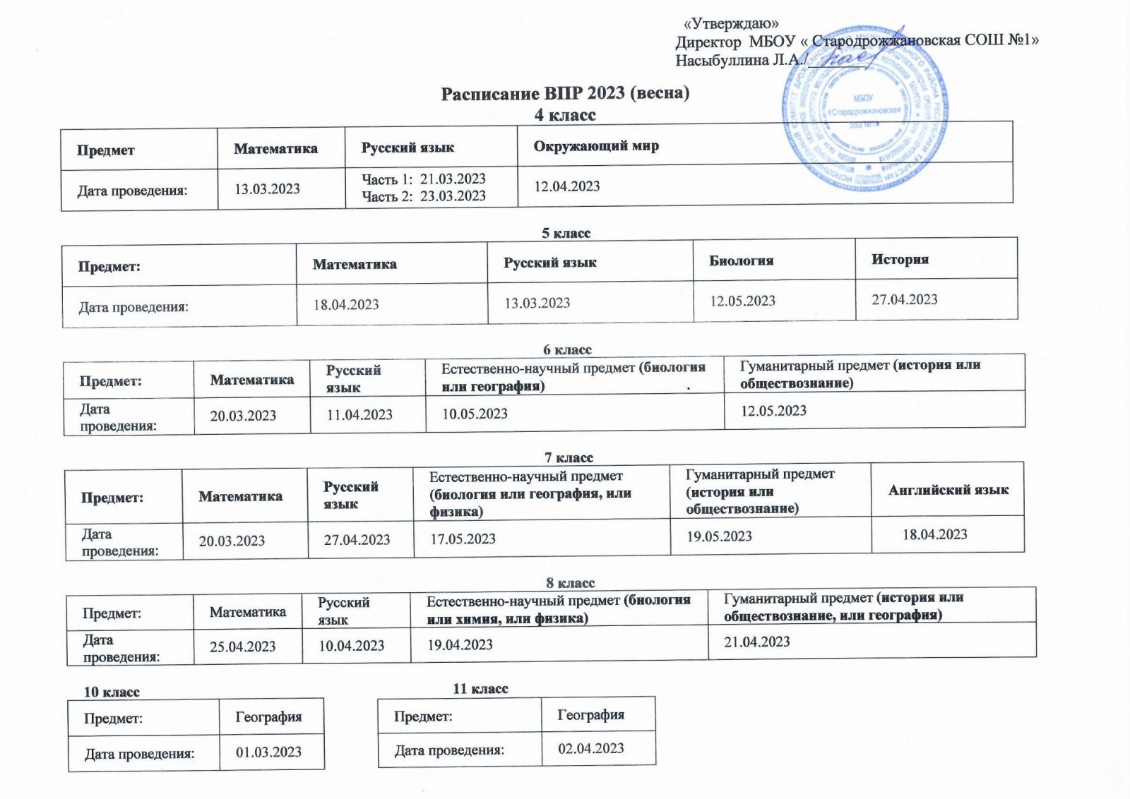 График проведения ВПР - 2024 в МБОУ "Стародрожжановская сош №1"