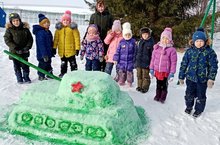 В честь 75 летия Победы воспитанники детского сада говорили сегодня о ВОВ и смастерили из снега фигуры танка и пятиконечной звезды.
