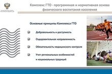 Зачем нужен комплекс ГТО? Целями ВФСК ГТО являются укрепление здоровья, гармоничное и всестороннее развитие личности, воспитание патриотизма. Задачами Всероссийского физкультурно-спортивного комплекса являются: а) увеличение числа граждан, систематически занимающихся физической культурой и спортом в Российской Федерации; б) повышение уровня физической подготовленности и продолжительности жизни граждан Российской Федерации; в) формирование у населения осознанных потребностей в систематических занятиях физической культурой и спортом, физическое самосовершенствование и ведение здорового образа жизни; г) повышение общего уровня знаний населения о средствах, методах и формах организации самостоятельных занятий, в том числе с использованием современных информационных технологий; д) модернизация системы физического воспитания и системы развития массового, детско-юношеского, школьного и студенческого спорта в образовательных организациях, в том числе путем увеличения количества спортивных клубов. ПРИНЦИПЫ ВНЕДРЕНИЯ ВФСК ГТО Всероссийский физкультурно-спортивный комплекс основывается на следующих принципах: а) добровольность и доступность; б) оздоровительная и личностно ориентированная направленность; в) обязательность медицинского контроля; г) учет региональных особенностей и национальных традиций.