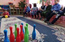 Воспитанники детского сада получили новые игрушки. Ребята с удовольствием стали с ними играть.На фото один из моментов игры в боулинг.