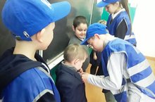 Сегодня в школе ЮИДовцы вручили первоклассникам световозвращающие элементы и памятки.