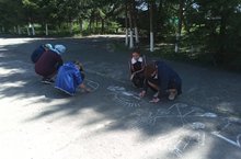 Обучающиеся нашей школы участвовали во Всероссийской акции "Яркое село!". Они нарисовали на асфальте добрые рисунки.