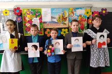 Накануне праздника 8 МАРТА, учащимися школы была оформлена выставка рисунков, посвящённая Международному Женскому Дню 8 МАРТА , которая называлась "Моя милая мама".