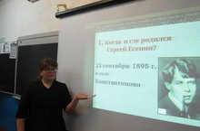 К 125 - летию великого русского поэта С.А.Есенина в нашей школе проводилась интеллектуальная игра "Певец страны березового ситца", которую проводила учитель русского языка и литературы Саитова Д.Р. с обучающимися 6,9 классов с целью воспитания уважения к творчеству поэта и развития связной устной речи и интеллекта.