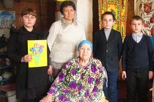 Сегодня в рамках акции учащиеся нашей школы оказали адресную помощь ветеранам тыла и пожилым людям нашей деревни. Учащиеся 5 класса, совместно с классным руководителем Алиулловой Р.А. посетили ветерана труда. Они убрали снег со двора, подметали полы, приносили воду. Также дети подарили пожилой женщине свои песни и стихи. Она была очень рада к приходу детей. На память сделали общее фото.