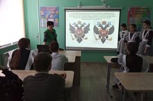 Учителем истории Фахрутдиновой М.Э. было проведено мероприятие для учащихся 5-9 классов «История герба Отечества». Мероприятие было направлено на популяризацию государственной символики и формированию гражданско-патриотической позиции обучающихся.