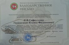 Коллектив МБОУ "Старошаймурзинская СОШ" награждён Дипломом за победу в акции «Больше слов» в треке «Креатор» за эффективную организацию образовательного процесса с использованием цифрового сервиса - учебного профиля Сферум в VK Мессенджере. Директор школы Сафиуллов Ильмас Фидаикович награждён Благодарственным письмом за эффективную организацию образовательного процесса в рамках акции «Больше слов» с использованием цифрового сервиса - учебного профиля Сферум в VK Мессенджере и Дипломом за эффективную организацию образовательного процесса с использованием цифрового сервиса - учебного профиля, за победу в акции «Больше слов» в треке «Креатор» среди образовательных организаций Республики Татарстан, добросовестный труд в системе образования Республики Татарстан.