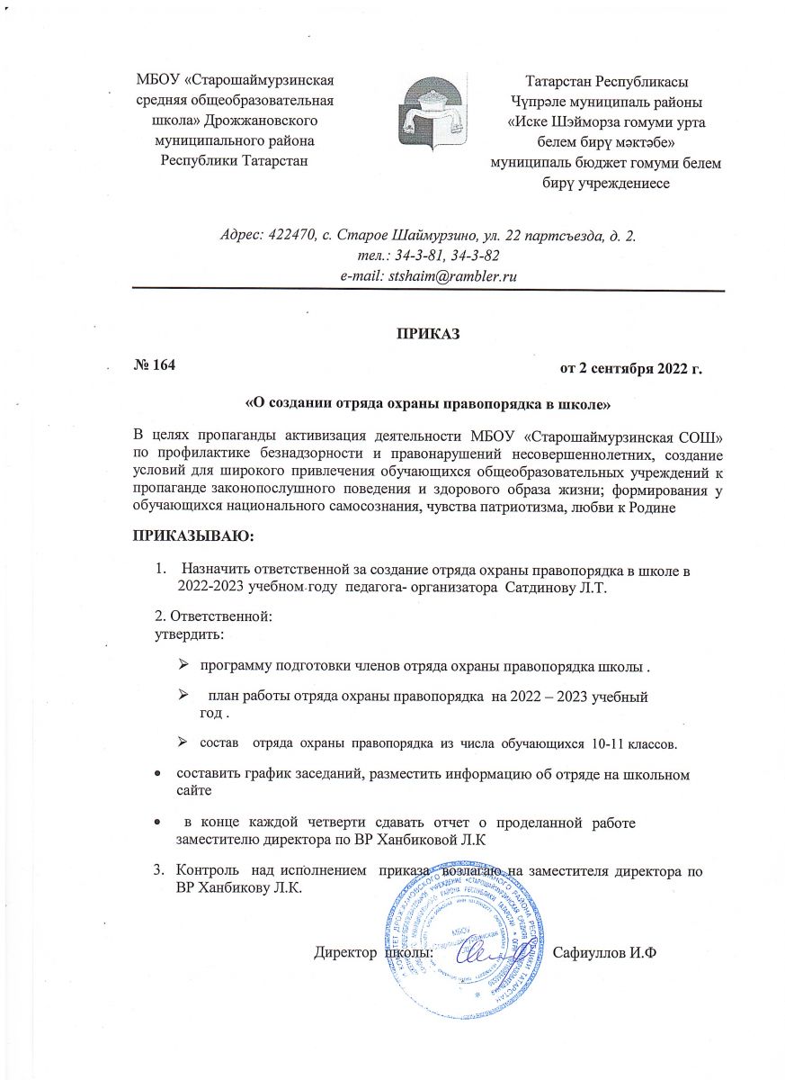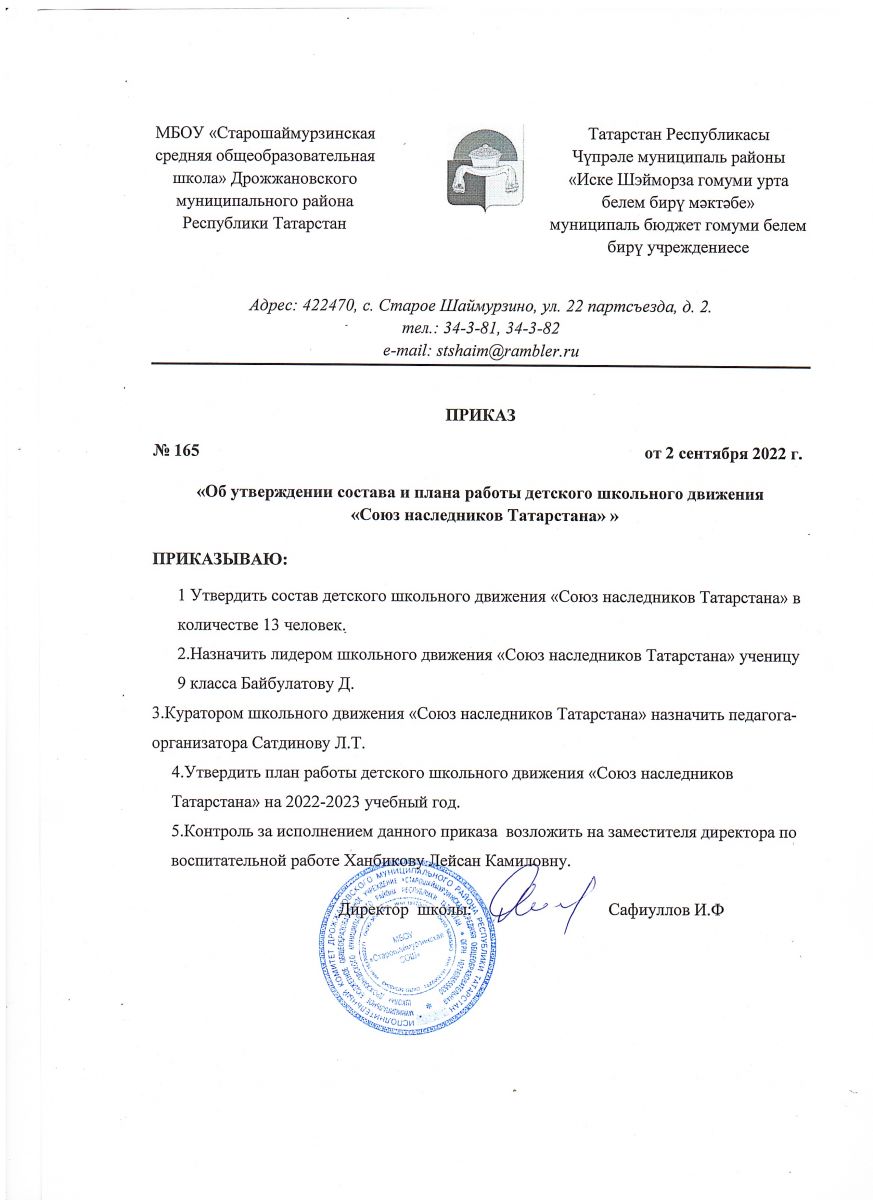 | Адрес: | 422460, РТ, Дрожжановский район, с. Старое Шаймурзино, ул. 22 партсъезда, дом 2 |