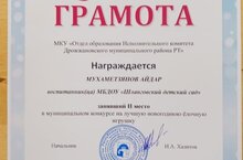 Воспитанник нашего детского сада, Мухаметзянов Айдар занял 2 место в муниципальном конкурсе на лучшую новогоднюю ёлочную игрушку. Мы поздравляем его!