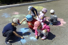 За участие в конкурсе рисунков на асфальте, посвященном дню защиты детей