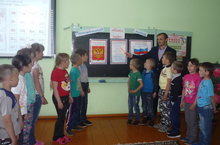 Сегодня в пришкольном лагере "Кояшкай" начальник лагеря-учитель истории И.И.Якупов провел беседу с детьми на тему "Символы России".