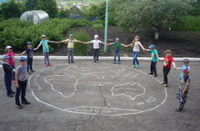 Сегодня воспитатели пришкольного лагеря "Кояшкай" организовали конкурс рисунков на асфальте "Моя страна". День был теплый, солнечный, и дети с удовольствием рисовали свои представления о мире, о своей Родине.
