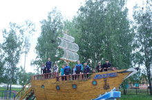 Учащиеся палаточного лагеря ездили на экскурсию в районный центр. Они посетили парки, музей и бассейн.