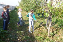 Сегодня в школе прошла акция "Осенний листопад"дщ. Ребята очистили яблоневый сад от осенней листвы.
