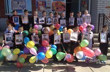 Бөек Җиңүнең 70 еллыгы уңаеннан, укучыларда сугыш чорында кешеләрнең батырлыгын бәяләү, аларны хөрмәтләү, кадерләрен белү сыйфатларын тәрбияләү максатыннан, митингта "Үлемсез полк" акциясы узды. Укучылар сугышта катнашкан авылдашларының портретларын тотып фотога төштеләр.