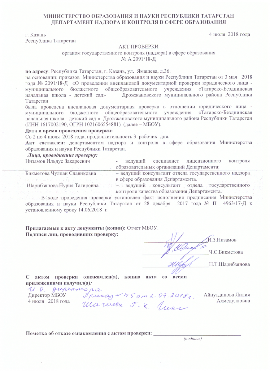 МБОУ для детей дошкольного и младшего школьного возраста«Татарско-Безднинская начальная школа- детский сад» Дрожжановского муниципального района РТ / Татарстан Республикасы Чүпрәле муниципаль районының мәктәпкәчә һәм кече яшьтәге мәктәп балалары өчен муниципаль бюджет гомуми белем бирү учреждениесе “Татар Бизнәсе башлангыч мәктәп-балалар бакчасы”