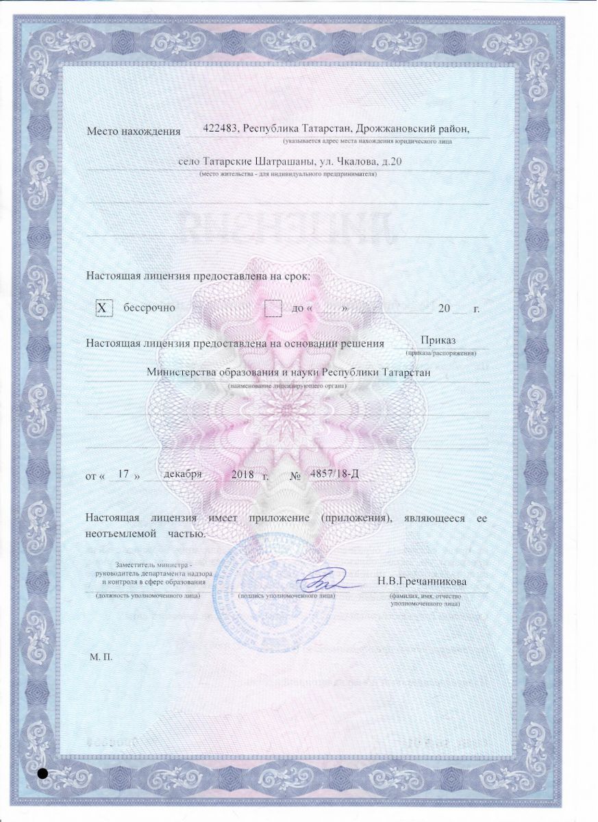 Адрес: 422483, РТ, Дрожжановский район, село Татарские Шатрашаны, ул. Чкалова, д. 20