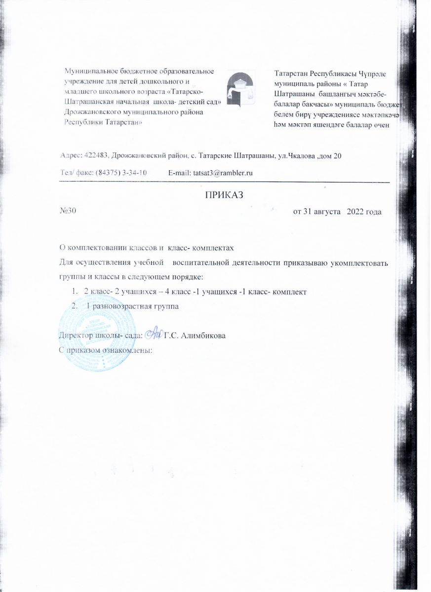 Адрес: 422483, РТ, Дрожжановский район, село Татарские Шатрашаны, ул. Чкалова, д. 20