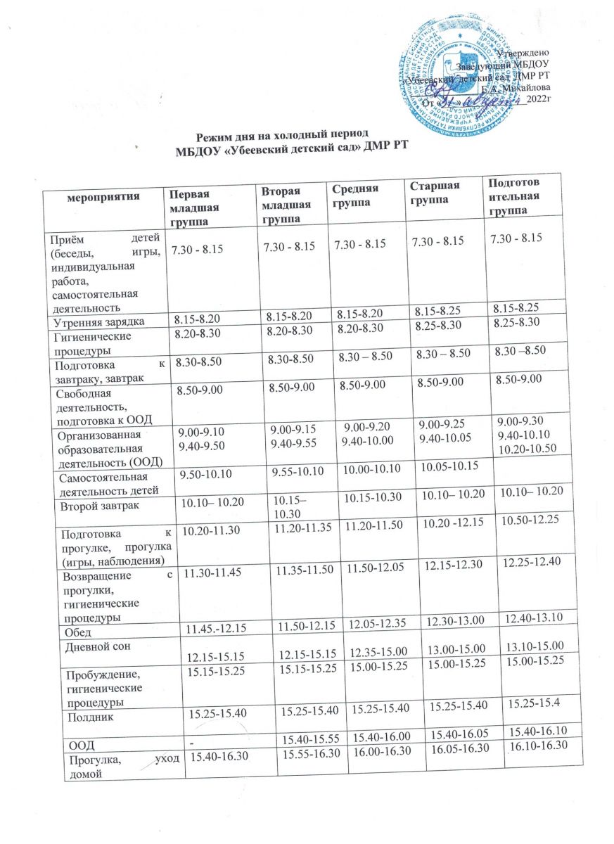 Режим дня на холодный период