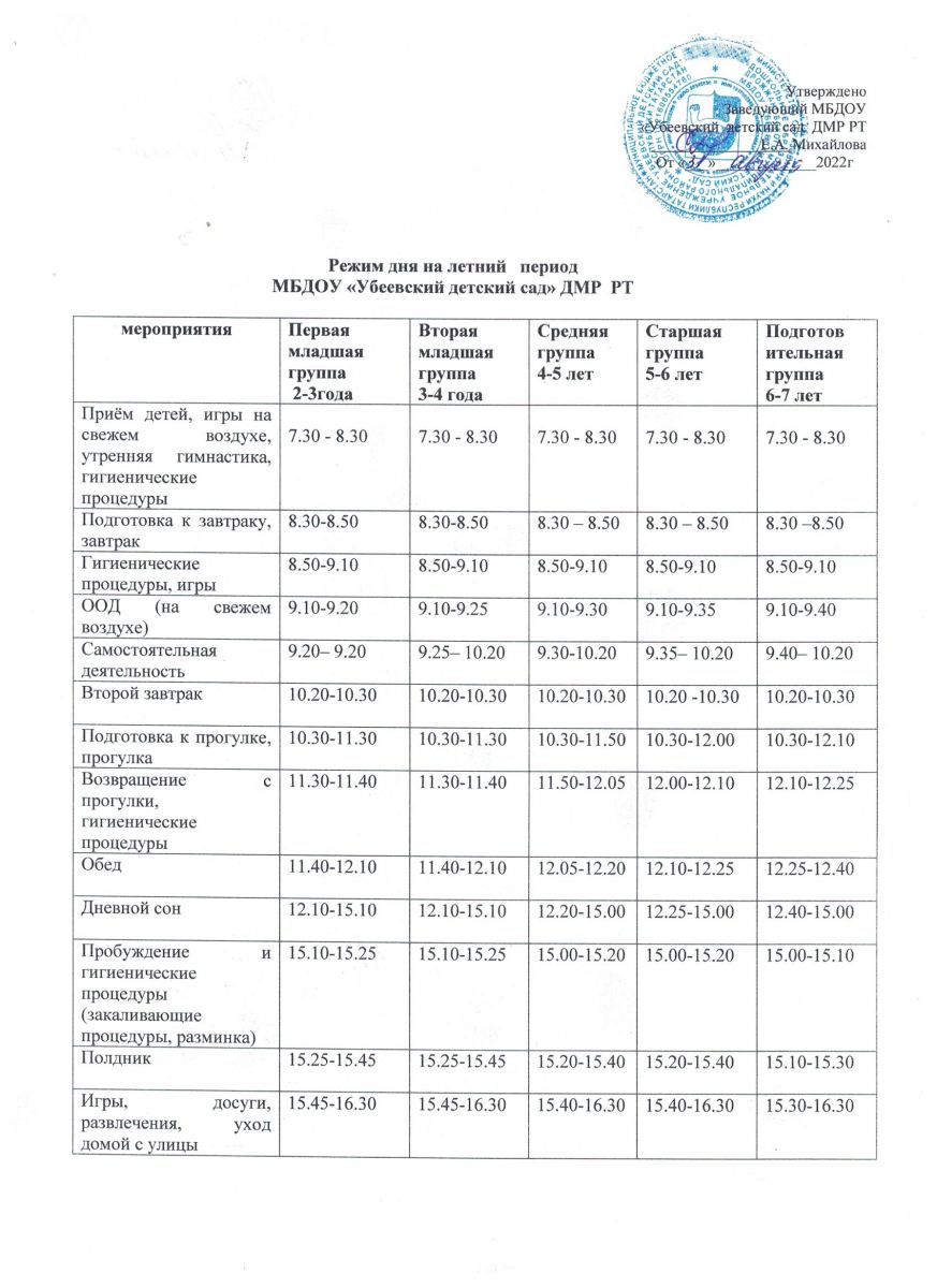 Режим дня на теплый период