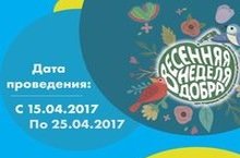 "Весенняя неделя добра - 2017" 15.04.2017 Во всем Татарстане, с 15 по 25 апреля пройдет очередной этап Всероссийской акции «Весенняя неделя добра". Цель недели добра, проходящей под девизом «Делай! Учись! Меняй мир к лучшему!» – вовлечение жителей республики, в первую очередь молодежи, в добровольческую деятельность, реализацию мероприятий, направленных на решение социально значимых проблем.