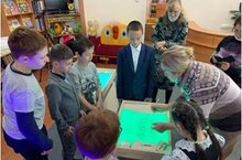Сегодня учащиеся 4 класса посетили занятие в ЦДБ в рамках проекта песочная библиотерапия «Вместе мы сможем». Игры с песком – одна из форм естественной деятельности ребенка. В процессе занятия ребята посмотрели сказку «О рыбаке и рыбке», затем стали рисовать персонажей сказки при помощи песка. Использование песочной терапии дает положительные результаты: дети чувствуют себя более успешными, раскрепощенными, повысилась самооценка и вера в свои силы. Занятие очень понравилось. Дети с удовольствием будут посещать эти занятия.