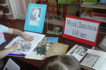 Сегодня к нам в детский сад пришла библиотекарь нашей сельской библиотеки Парамонова Татьяна Николаевна. Целью её прихода было ознакомление детей с творчеством и произведениями Мусы Джалиля. Вместе с воспитателями она организовала мини-библиотеку из книг поэта для малышей. Дети с удовольствием слушали произведения поэта, рассматривали книжки и иллюстрации к произведениям.