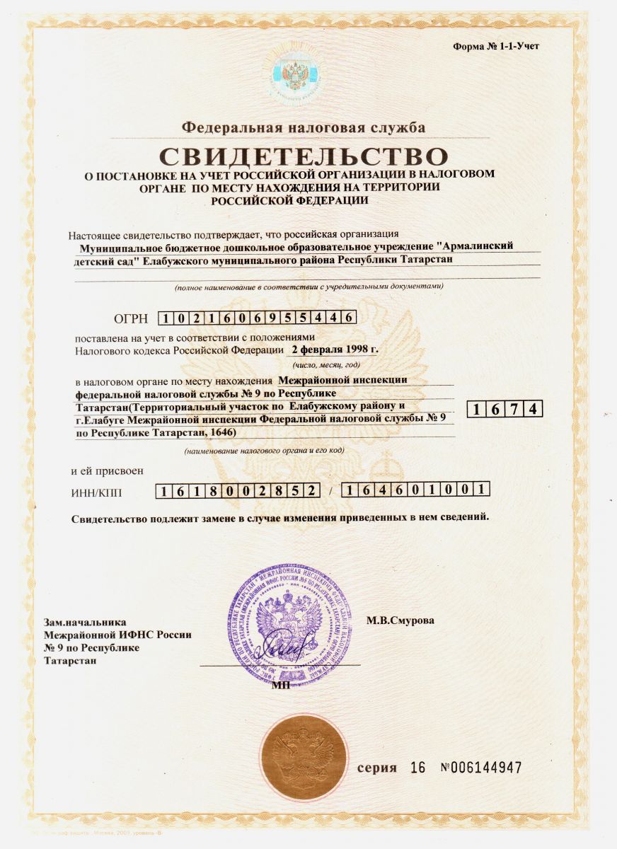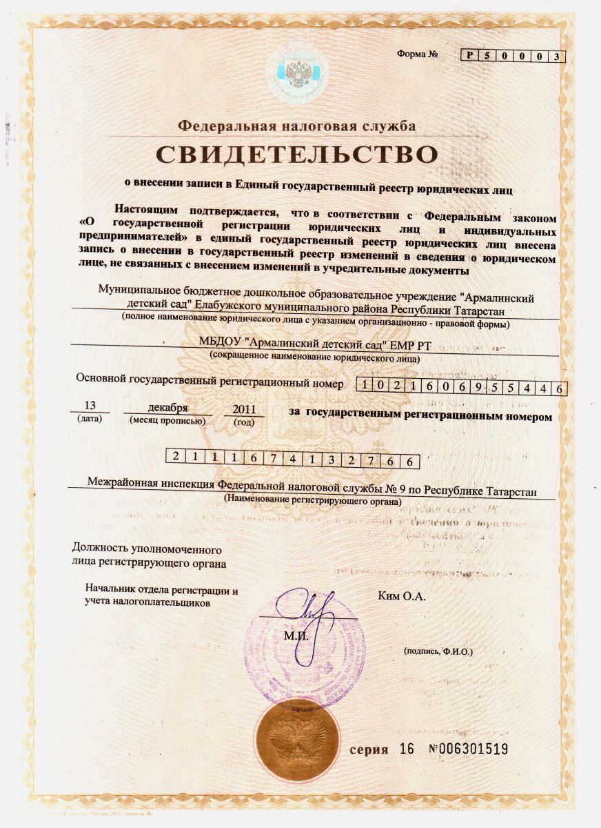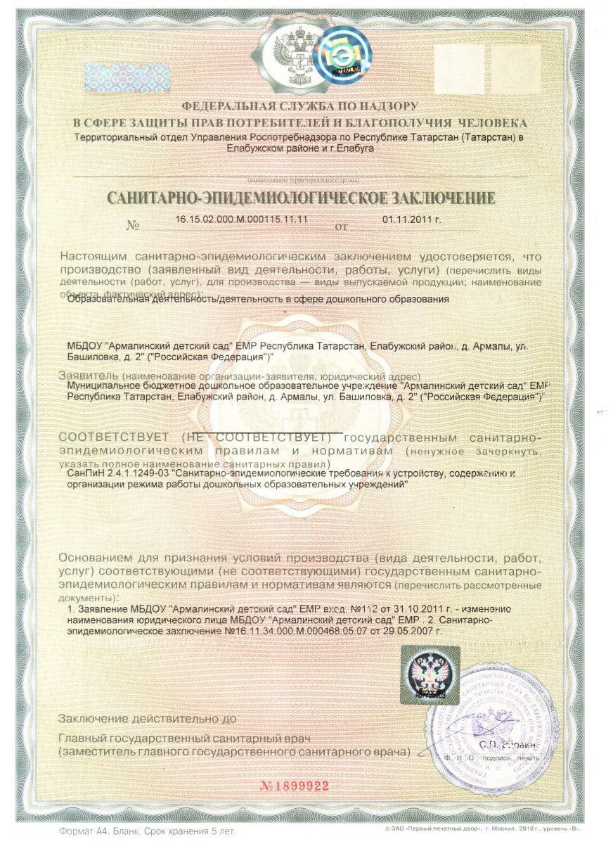Муниципальное бюджетное дошкольное образовательное учреждение"Армалинский детский сад" Елабужского муниципального района Республики Татарстан/ Татарстан Республикасы Алабуга муниципаль районы «Армалы балалар бакчасы» муниципаль бюджет мәктәпкәчә белем бирү учреждениесе