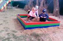 Песочница, песочница! А в ней песок, песок. Песочница, песочница! Идем играть, дружок. Песочница, песочница! В руках у нас совок. Песочница, песочница! Мы черпаем песок.