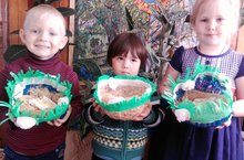 Вот какие замечательные корзиночки сделали наши дети для пасхальных угощений! Расписные куличи, крашеные яйца, А за праздничным столом гости собираются. Всем сегодня я желаю В мире жить, не унывая.