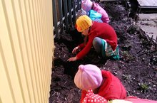 Сотрудники и родители провели уборку территории детского сада: на спортивном участке и цветниках.