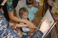 Дети вместе с родителями рисуют осенний пейзаж! Получился настоящий шедевр!