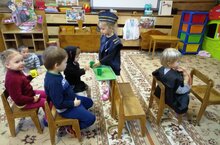 "Играем в профессии""Һөнәрдә уйныйбыз" 14.10.2022 Цель: Формирование умения творчески развивать сюжет игры. Задачи: Расширять представления детей о работе аэропорта, о воздушном транспорте. Обучение игровым действиям: – Построить самолёт из стульчиков. – Организовать пространство аэропорта (кассы, пропускной пункт, пункт регистрации пассажиров, кафе. – Управлять самолётом. – Проводить технический осмотр и заправку самолёта топливом. – Продавать билеты, продукты питания. – Регистрировать пассажиров, оформлять багаж. – Обслуживать пассажиров в полёте (предлагать напитки, прессу). Роли: – командир корабля; – стюардесса; – кассир; – контролёр; – пассажиры.