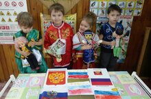 "День народного единства" "Халыклар бердәмлеге көне" 03.11.2022 «4 ноября — День народного единства» Цель: формировать знания об истории праздника День народного единства, понятие о России, как о много национальном государстве, народы которого проживают в дружбе и согласии между собой. Закрепить знания о флаге, гербе и гимне. Воспитывать любовь и уважение к Родине, проживающим народам, формировать дружеские взаимоотношения в детском коллективе. Развивать слуховое внимание и память. Предварительная работа: с детьми проводятся беседы о дружбе, о Родине, разучиваются стихи, народные пословицы и поговорки, народные игры. Дети слушают Гимн РФ, изучают символику РФ.