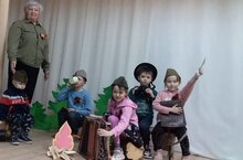 В рамках мероприятий, посвященных дню Победы в ВОВ, воспитанники сада участвовали в сюжетно-ролевой инсценировке «На привале», посетив сельский Дом культуры. Вместе с художественным руководителем Роевой Розой Ивановной спели песни на тему «Мелодии войны».