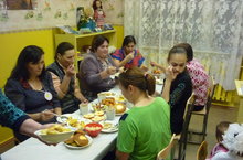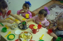 После выступления детей все дети с мамами сели пить чай со сладостями.