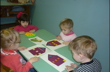 Лягушка просит ребят построить ей домик, её жилище унес проказник ветер. Ребята отгадывают фигуры, из которых строился домик.