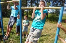 Сегодня в пришкольном лагере “Непоседы” ребята сдавали нормы ГТО. Они бегали в 30-60 м, прыгали в длину, подтягивались и отжимались.