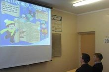 проведен для учащихся 7 класса. На основе презентации ребятам были предоставлены для решения ситуативные задачи, вопросы викторины. Кроме этого, была составлена памятка "Как вести себя при пожаре"