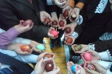 13 апреля с учениками начальных классов проводили праздник Пасхи. Устраивали разные соревнования, конкурсы. После праздника с конфетами и куличами пили чай.