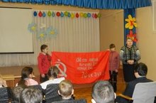 В рамках месячника военно-патриотического воспитания учащихся 26 января в нашей школе проводилась политинформация, посвященная 70-летию Великой Победы. Учитель истории Кузьмина Алевтина Дмитриевна рассказала историю одного знамени и продемонстрировала перед учащимися Знамя Победы, оригинал которой находится в Центральном музее Вооруженных Сил в Москве.