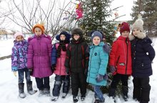 В школе идет активная подготовка к Новому году: проводятся репетиции, учащиеся рисуют стенгазеты, лепят снежные фигуры, учат стихи, чтобы рассказать их Дедушке Морозу. А сегодня учащиеся начального звена нарядили елку, которая теперь радует всех во дворе школы своим праздничным нарядом