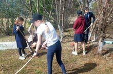 Мәктәпнең дус коллективы мәктәп ишегалды территориясен тәртипкә китерү өчен өмәгә чыкты