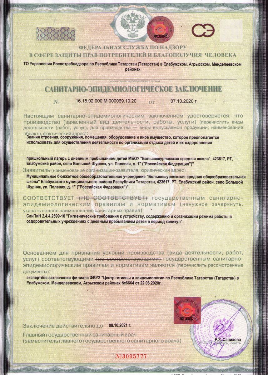 Приказ МБОУ "Большешурнякская средняя школа" ЕМР РТ об организации осеннего отдыха