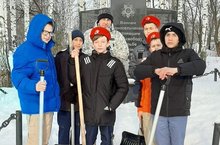 Юнармейцы с руководителем расчистилиот снега дорожку к обелиску в Парке Победы.