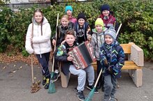 Сегодня в рамках "Чистый город" учащимися, учителями школы были очищены от сухих листьев территория школы.