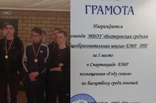 Сегодня, баскетбольная команда юношей нашей школы, приняли участие в спартакиаде по баскетболу среди школ Елабужского района,посвященной Году семьи и заняла первое место. Поздравляем с победой! Молодцы!!