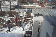 1 апреля стартовал двухмесячник по санитарной уборке территории. Сейчас главная задача - помочь снегу растаять! Поэтому все: и сотрудники школы, и ученики - выходят с лопатами и раскидывают выросшие за зиму сугробы.