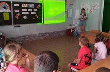 Балалар "Табигатьне ничек сакларга" дигән танып-белү мультфильмын карадылар, әйләнә-тирә экология турында әңгәмәдә актив катнаштылар.