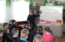 Библиотекарь рассказала детям о деятельности разведчиков, о партизанском движении в годы Великой Отечественной войны, о медали «Партизану Отечественной войны», о подвигах пионеров-героев Марата Казея, Лёни Голикова, Зины Портновой и других детей-героев, сильных духом.